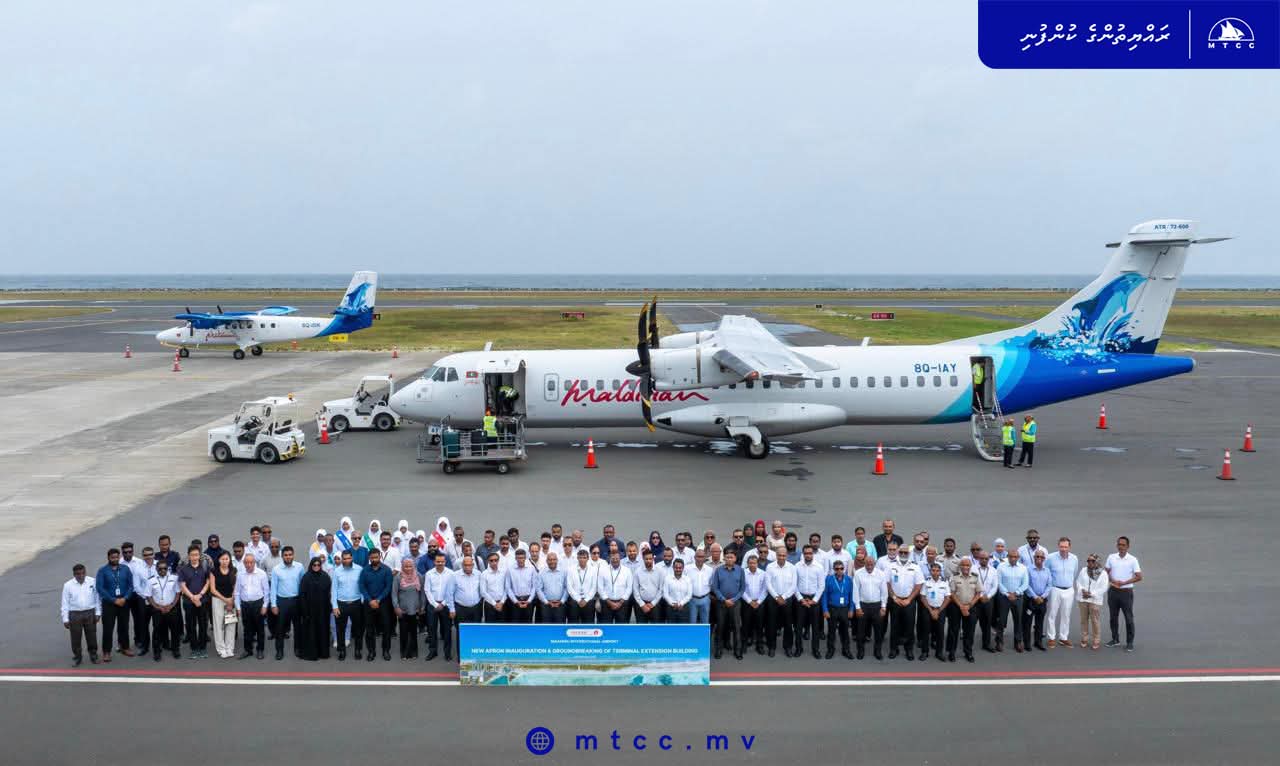 Yesterday, Maldives Transport and Contracting Company (MTCC) marked another milestone in national aviation infrastructure development as its senior leadership attended the inauguration of the newly completed apron and the groundbreaking ceremony for the terminal extension at Maafaru International Airport.