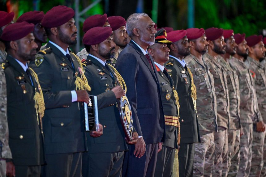 Highlighting the force’s long-standing legacy, Muizzu said the MNDF’s 134-year history is “etched in gold”, paying tribute to fallen heroes, mujahideen, and generations of servicemen and women who defended the nation during times of crisis. He noted that their sacrifices continue to shape the resilience and unity of the Maldivian people.
