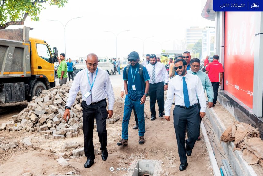 The inspection visit was led by the Minister of Construction, Housing and Infrastructure, Dr Abdulla Muththalib, accompanied by the Managing Director of MTCC, Ahmed Saudee. Officials reviewed progress on site and assessed ongoing works under the second segment of the project.